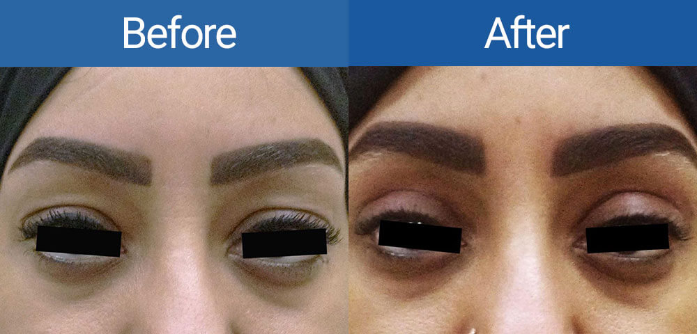It is the correction of laxity of skin and muscle in the upper or lower eyelids, removal of excess fat that appears like a hernia throughout the eyelid septum to the skin in the form of fat pads in multiple sites, mostly in lower but also in the upper lids.