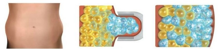 Τα λιποκύτταρα όντας πολύ ευαίσθητα σε χαμηλές θερμοκρασίες διασπώνται καταστρέφονται και αποβάλλονται από τα νεφρά με την διούρηση. Τα αποτελέσματα είναι μόνιμα όπως στην επεμβατική λιποαναρρόφηση ενδείκνυται όμως για μικρές λιποδυστροφίες στους βραχίονες, γόνατα, κοιλιά, πλάτη, γλουτούς και πλάγια των μηρών.